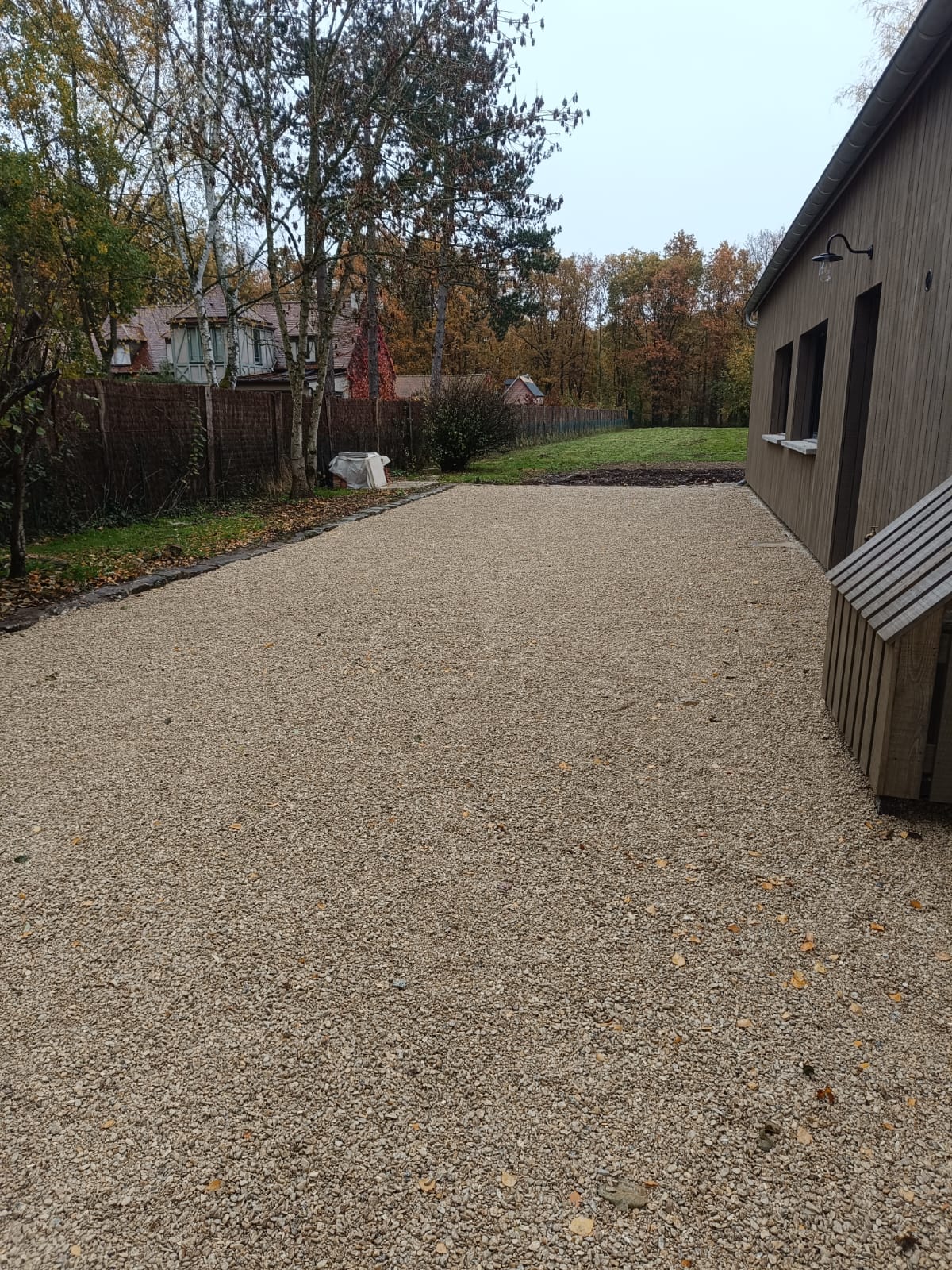 Nos paysagistes ont aménagé des allées piétonnes et pour voitures autour d'une nouvelle construction sur la commune de Grosrouvres.