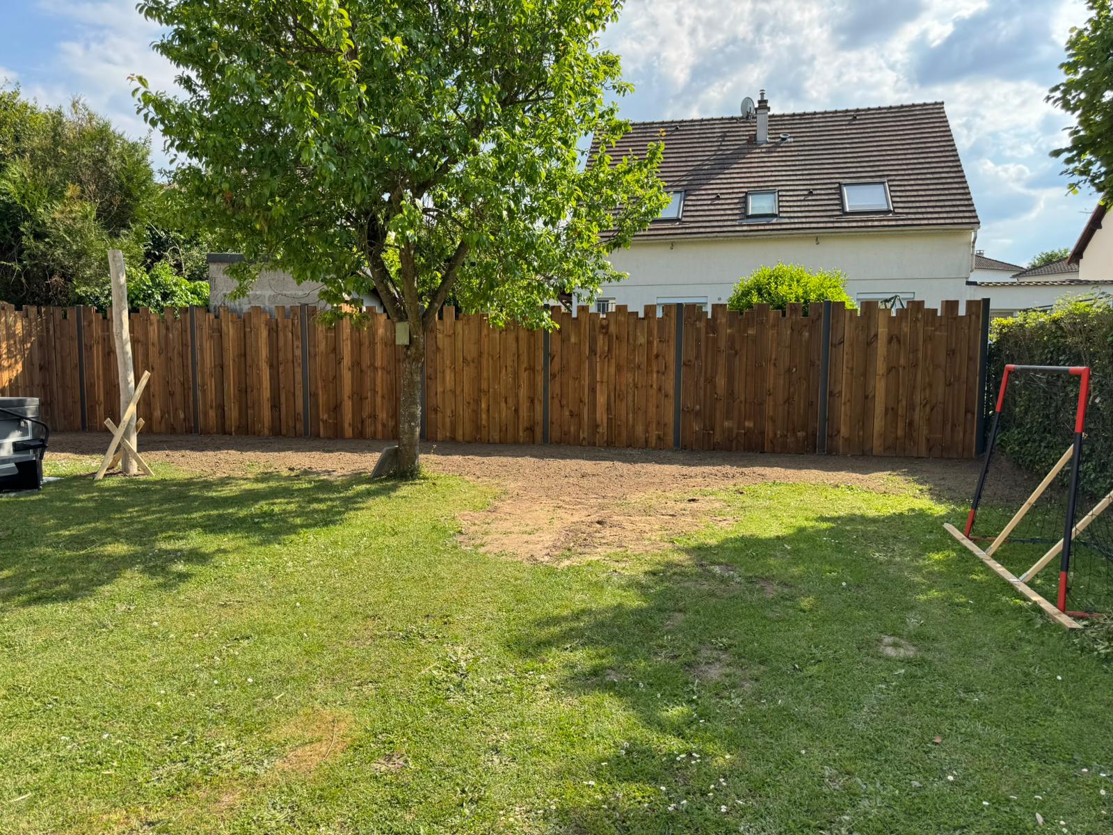 Nos équipes viennent d'installer une magnifique clôture palissade Nymphéa de chez Vivre en Bois. L'alliance des panneaux en bois de qualité et des poteaux en aluminium moderne assure à ce client à la fois une intimité durable et un design élégant.